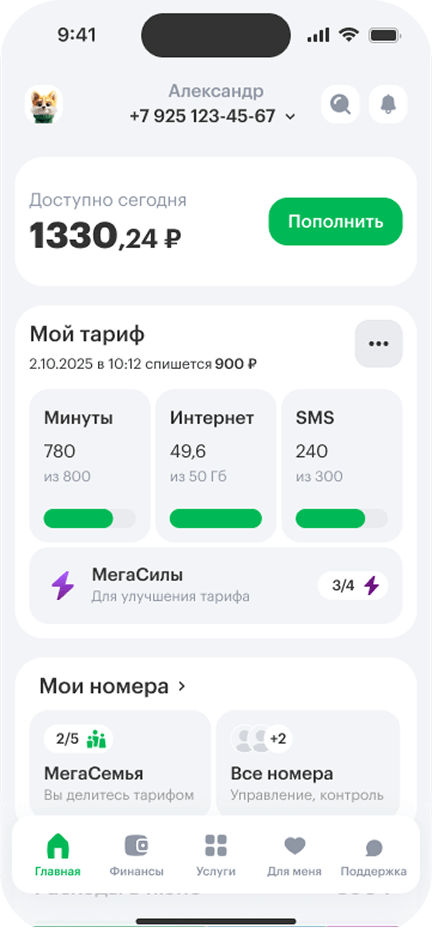 - 1Войдите в Личный кабинет и на главной нажмите на плитку «МегаСилы».